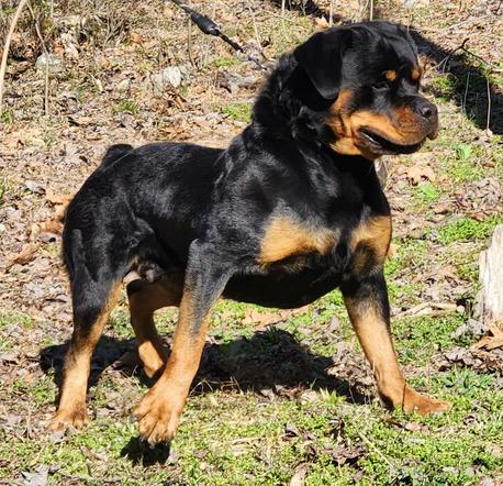 Western Family Ranch is pleased to announce the arrival of 9 big, healthy puppies out of our male Cowboy, and Baker Pasture's IMPORT female- Bonnie von Sieben Kronen CGC (call name "Zara"). Cowboy is son of our girl Willow (Import CH Power Brcko Star x Import CH Gina vom Bonzi Star), and our male Bravo (World CH Tito Earl Antonius x Multi CH Import Habibi Se Ungo Rott). Zara's previous litter was by Cowboy, they are about a year old now- and they are gorgeous! We co-own this litter- and puppies will be here at our farm!. Puppies will be ready to go home after receiving their 2nd set of puppy shots and microchipping at 8 weeks old. Zara's puppies are expected to be ready to go home early December.